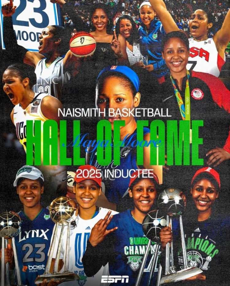 9月7日讯 今天,WNBA传奇球星、WCBA名宿玛雅-摩尔正式入选奈史密斯名人堂。