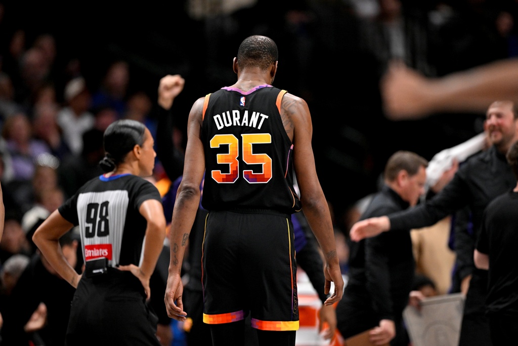 太阳这边打着打着又变成了杜兰特和布克想想办法,36岁的老同志出战41分25秒,拿到35分5篮板5助攻,三分9中7,但他恐怕还是要自责自己没能投中绝杀一球。布克也打了超过40分钟,不可谓不努力,但面对灰熊的对抗强度,他确实无法稳定扮演进攻发起者的角色。太阳又变成了上琼斯缺防守、下琼斯要忍受普拉姆利的骚操作(因为他比理查兹处理球能力更强)。