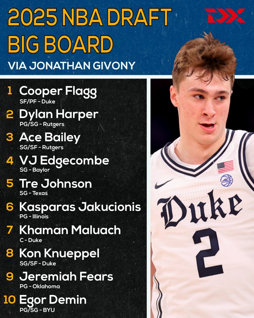 ESPN本次榜单前四位与TA榜单完全一致,杜克大学新星库珀-弗拉格稳居首位,罗格斯大学双子星迪伦-哈珀和埃斯-贝利分列二三,第四位是来自巴哈马的新人后卫埃奇库姆。