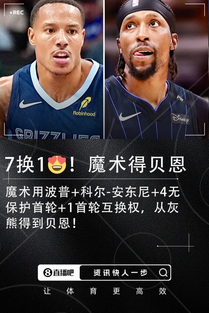 06月15日讯 据名记Shams报道,大交易发生:灰熊将贝恩交易至魔术,换波普+科尔-安东尼+四个不受保护的首轮签+一个首轮签互换权!