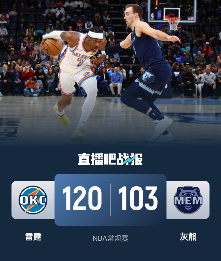 亚历山大41+8 莫兰特24+6 切特&JJJ缺战 雷霆对灰熊取8连胜