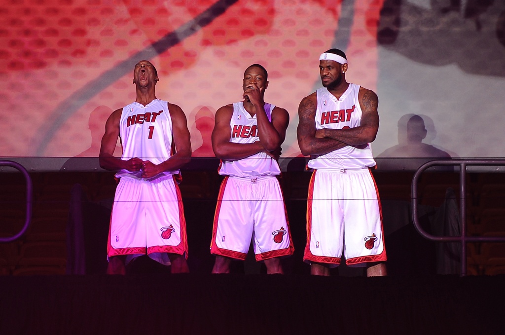 2010年,詹姆斯、韦德和波什聚首迈阿密,并在接下来的4年中夺得了两个总冠军。