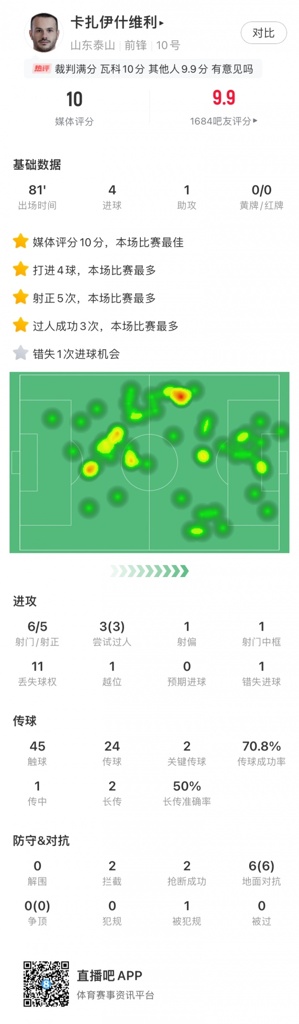 本期提名球员仅有1位——卡扎伊什维利!他面对泰山宿敌国安,打进4球+1次助攻,奉献完美表现!