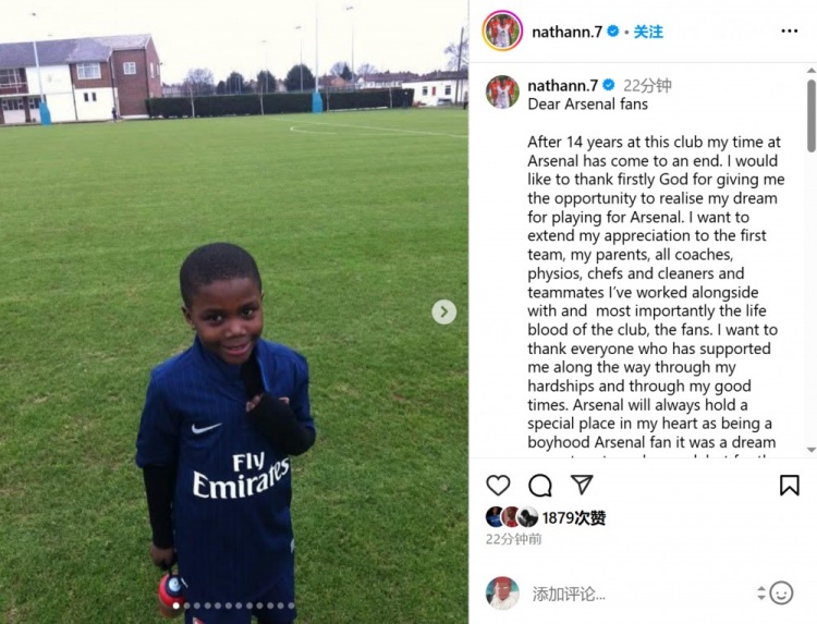 我要感谢在我低谷与巅峰时一路支持我的所有人。阿森纳将永远在我心中占据一个特殊的位置,因为从小就是阿森纳球迷的我,能代表俱乐部首次登场是梦想成真。