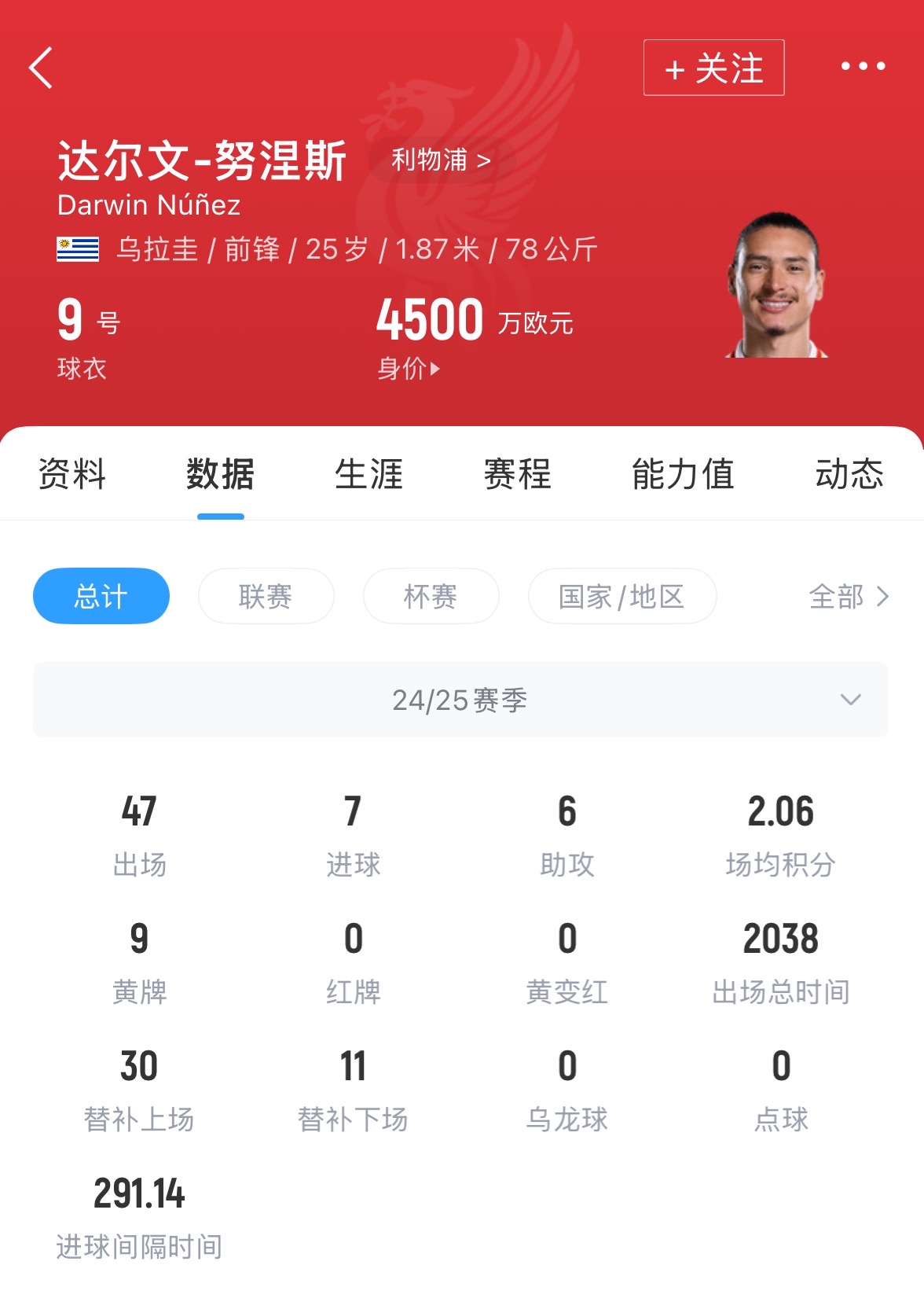 利物浦在2022年购买努涅斯时,花费了8500万欧元,当时创造了俱乐部队史引援纪录,而这一纪录在今夏也被维尔茨打破。
