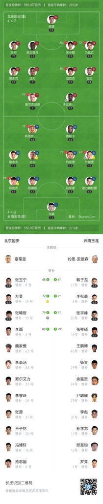第81分钟,张玉宁禁区内倒地,主裁判判罚点球!张稀哲主罚点球命中!北京国安2-1反超云南玉昆↓