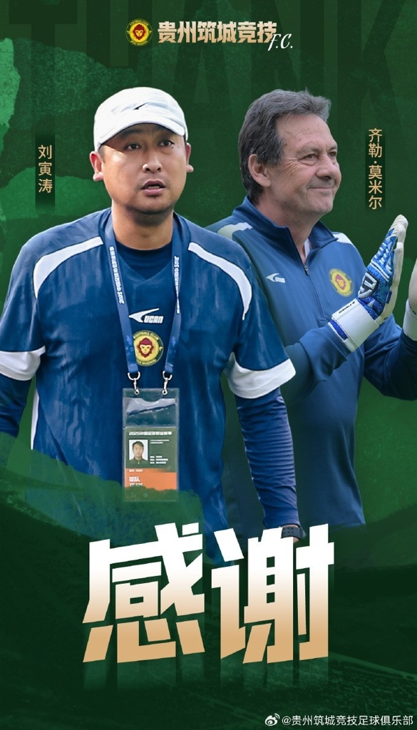 刘寅涛先生、齐勒·莫米尔(CIRIC·MOMIR)先生在任期间,始终勤勉务实、恪尽职守,为球队的建设与发展倾注了大量心血与智慧。俱乐部衷心感谢二位为贵州足球事业发展所作出的积极贡献,祝愿他们未来一切顺利!
